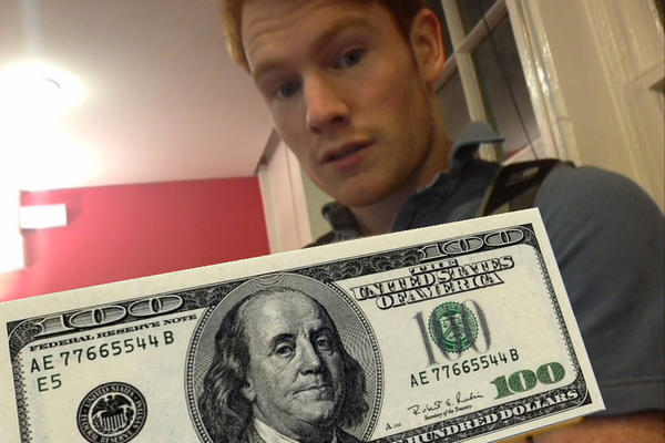 There are a selection of videos, images and slogans that play on different value bills, showing different content on each side. The technology works by identifying pre-set image markers, in this instance dollar bills, which when viewed through your device, are replaced by other content. You can share images of this effect by sharing on social media.