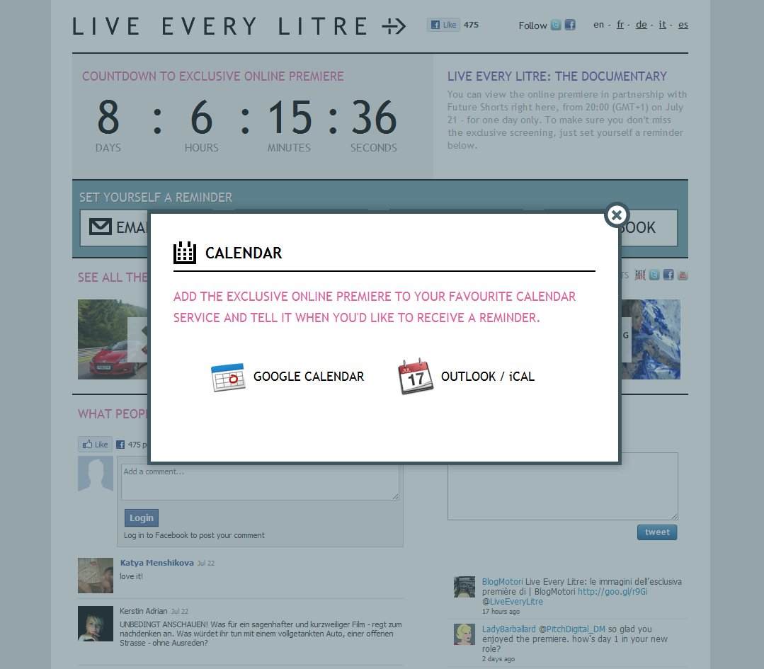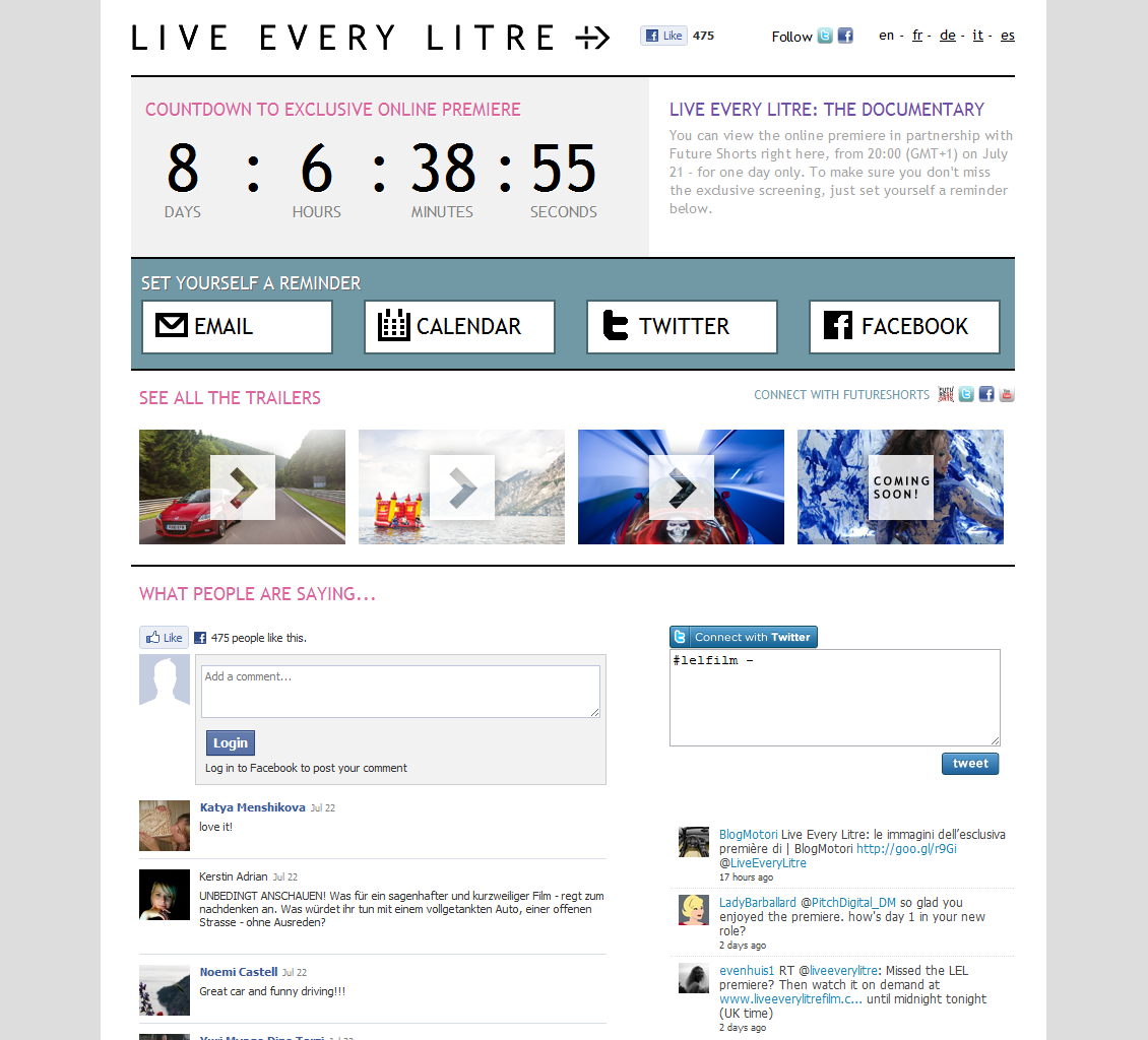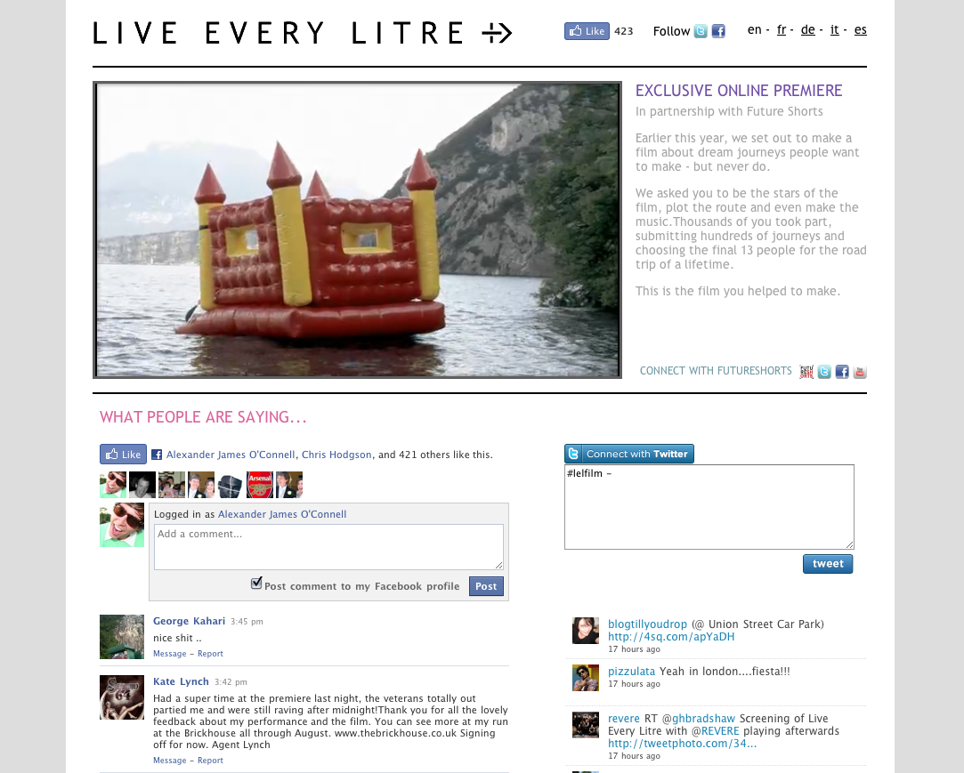 Future Shorts briefed us on 2ndJuly to build the Live Every Litre film site to go live on 9th -Â to engage users and build excitement ahead of the live premiere on 21st.