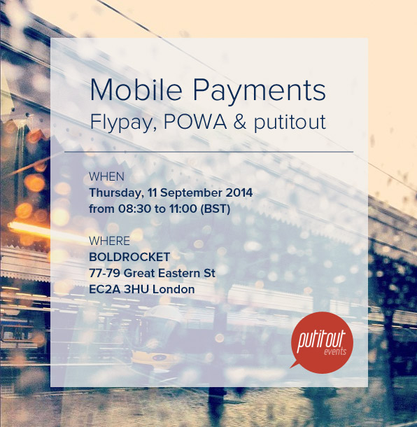 putitout is thrilled to host a morning focused on mobile payment bringing together some of the leading innovators in this fast moving spacem Flypay & POWA Technologies.Â
