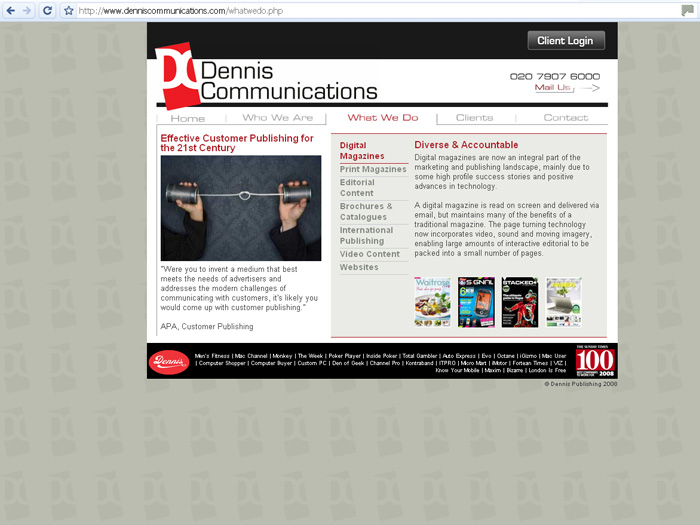 Dennis Publishing is one of the most well known names in publishing, the Communications business focuses on the contract publishing agency side.