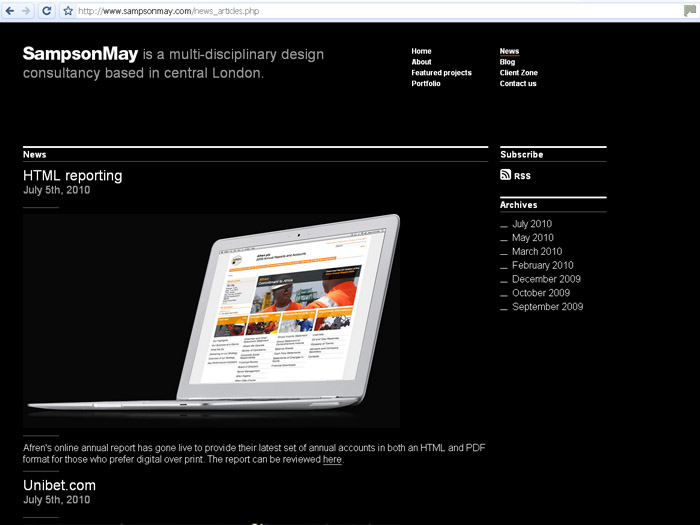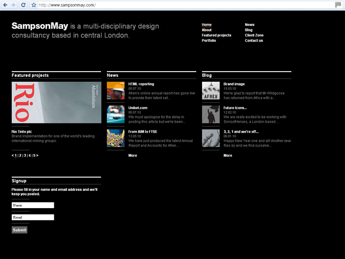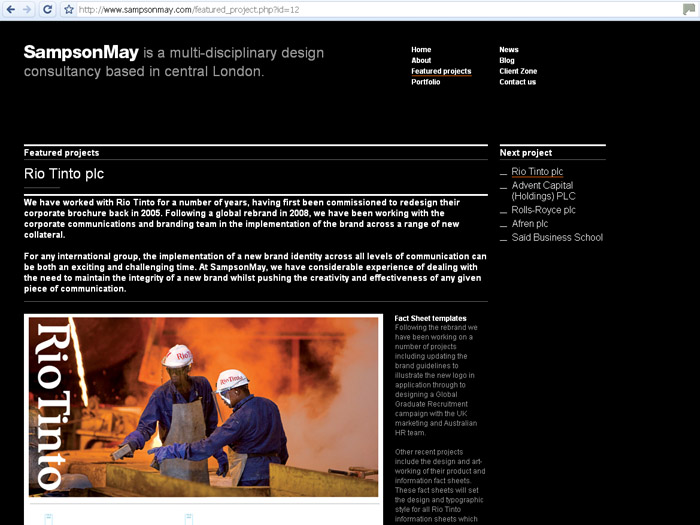 Sampson May are a serious design consultancy who deal with city types and some pretty impressive clients such as Rio Tinto and Rolls Royce.