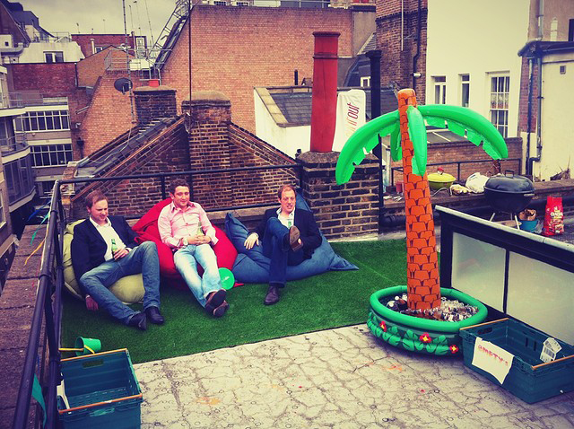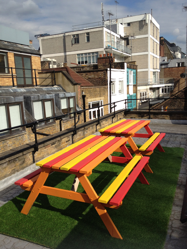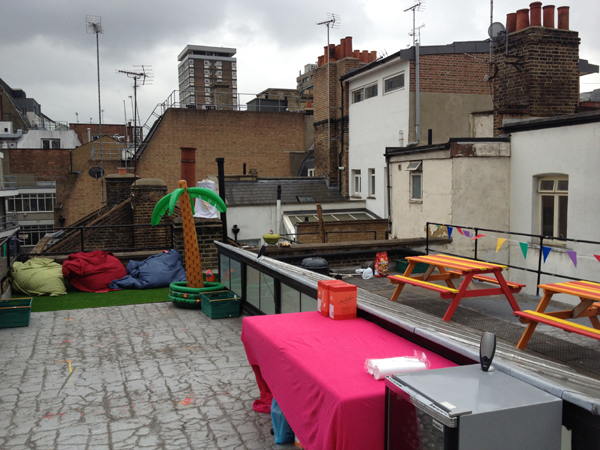With the sun out in an unmistakably glorious fashion on a peculiar day in Soho, it seemed to be the ideal time to begin the transformation of the roof terrace, from humble refuge for hard working digital enthusiasts, to theatre of festivities for friends and business doers.